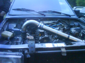 Men kul va det. Körde in till stan på motorvägen o det kommer en svart v70 bak o lägger sig o ska köra om. Jag va ju inte sen till att hänga på. upp till 190-200 sen släppte jag. Strax senare ringer min bror som ligger en bit bak o frågar "stod det inte R på den där v70:n"... Inte vet jag ... Kommer in till strippen o ska race:a lite... inge bra. bultarna till turbon hade skramlat loss o sabbat packningen. jaja dags o köra hem då.. Icke. troligtvis har ett par tändkablar smält på kuppen..